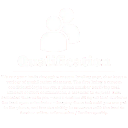 We use a multi-step qualification process designed to filter out anyone who isn’t a serious prospect. First, we run highly targeted ad campaigns that speak directly to your ideal business owner. Each lead is then sent to a landing page with a qualification survey built around the criteria you set. We confirm their contact information, nurture them through automated follow-up messages to keep them engaged, and send automated reminders to confirm appointments. By the time you speak with them, they’re warmed up, vetted, and ready for a real conversation.